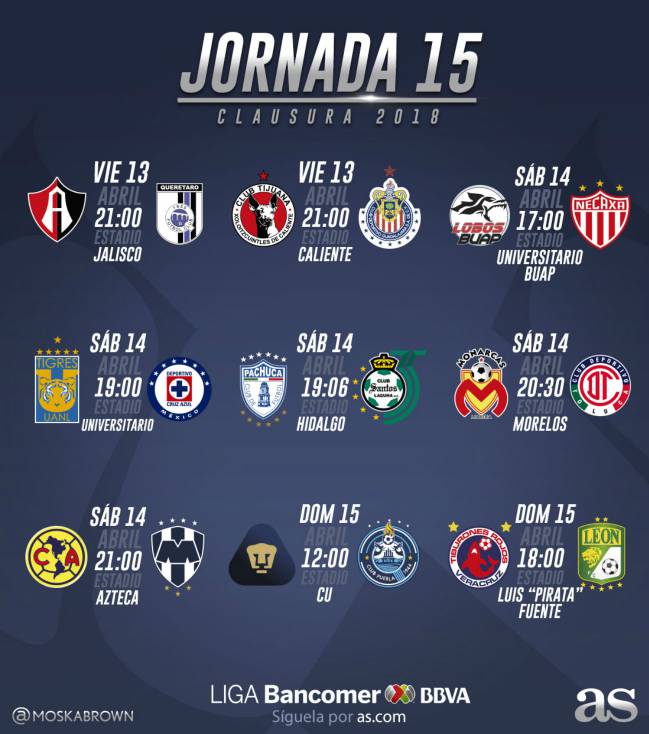 Fechas Y Horarios De La Jornada 15 Del Clausura 2018 De La Liga Mx As Mexico